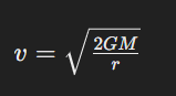where ( v ) is the escape velocity, ( M ) is the mass of the celestial object, and ( r ) is its radius.